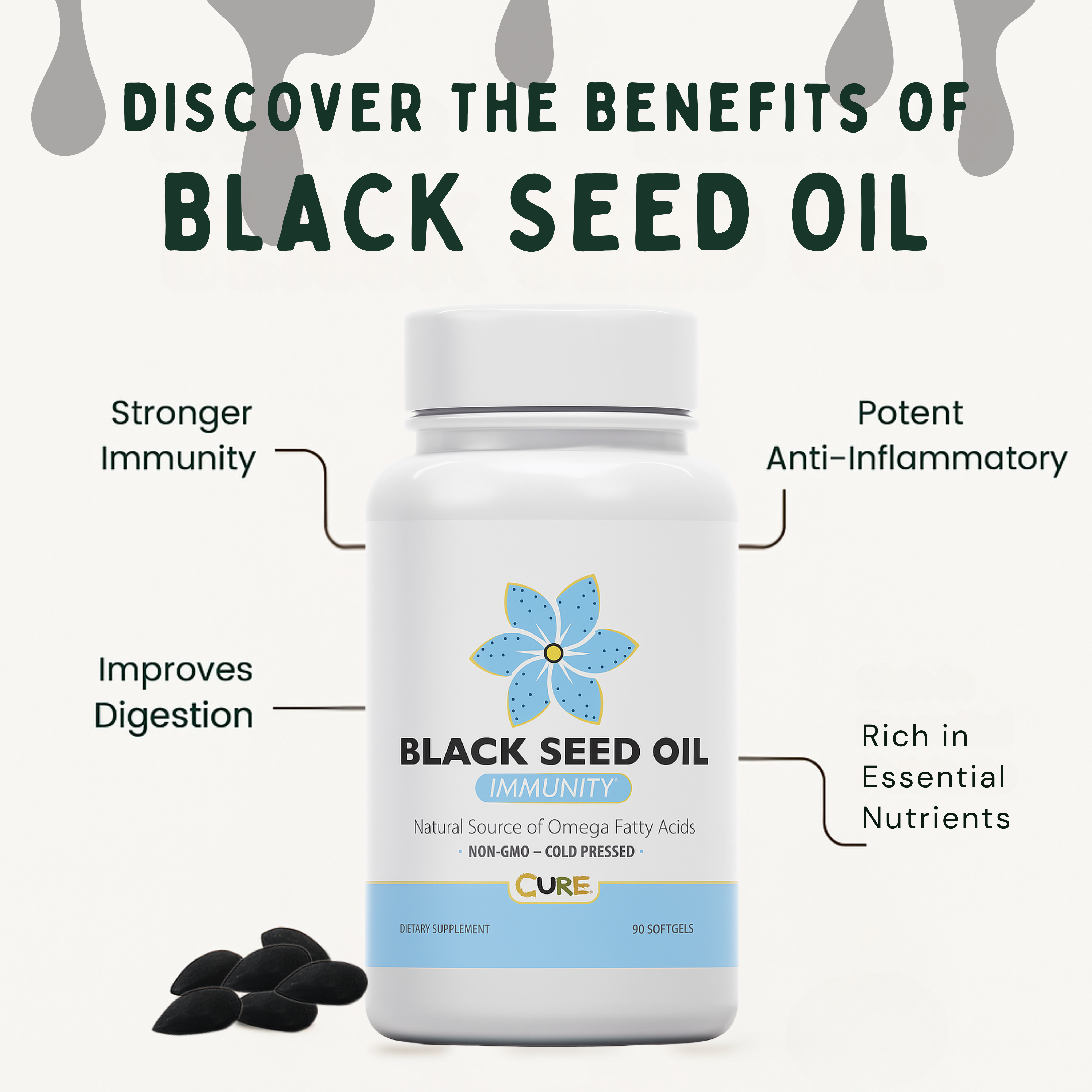 Try Cure Organic Black Seed Oil Gummies for 90 days, completely risk-free. If you don’t feel a real difference in your wellness, energy, or skin - get your money back. Because real results take time and we stand behind every dose.